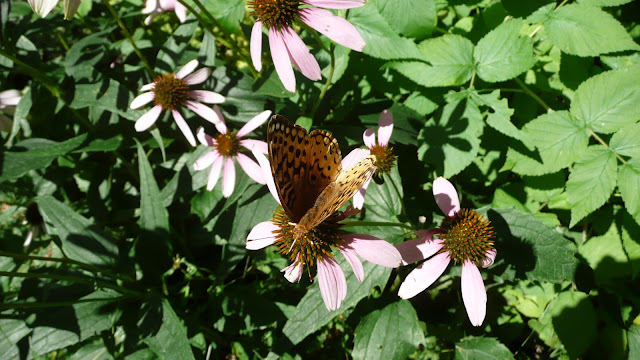 Argyne aphrodite de fin d'été, mitée, comme les fleurs !