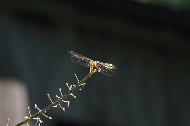 Prière du matin ! Décidément ce doit être la saison des Sympetrum vicinum, j'en vois partout depuis 2-3 jours. 30-35mm, vraiment petit dans le genre mais pas trop sauvage…il voisine !