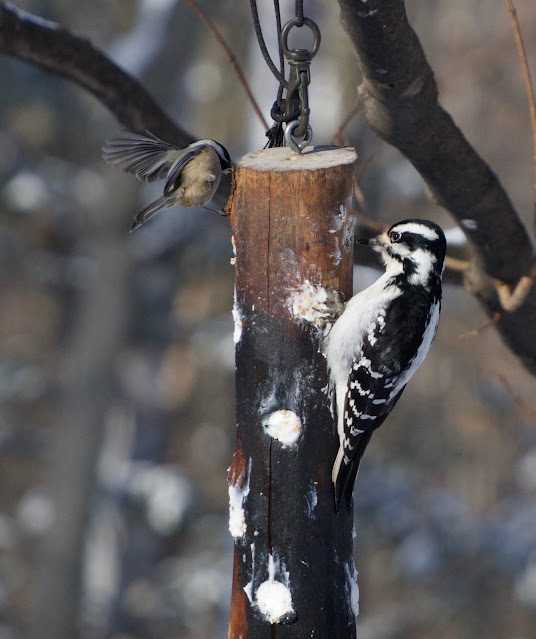 Pic chevelu et mésange.