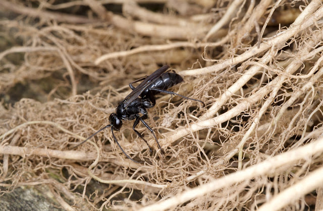 Pompilidae sp. 12mm~. Racines de valériane pour les chats cet hiver. La bête a de beaux éperons.