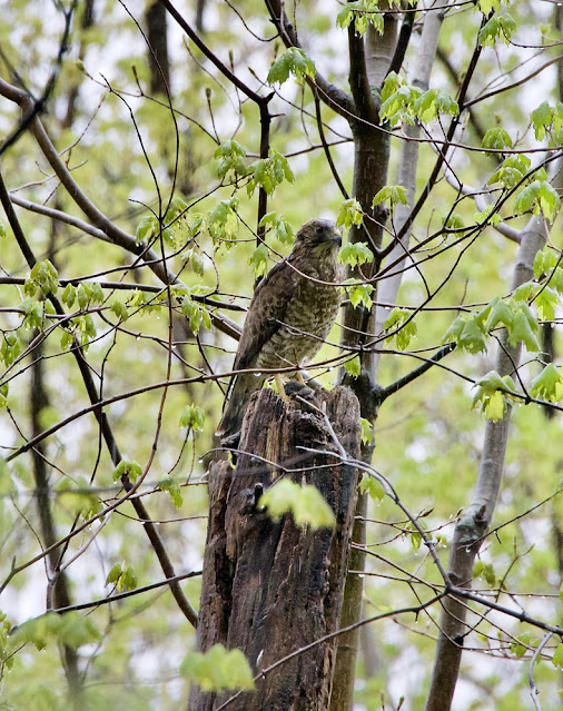 Observation d'une petite Buse. Buteo platypterus.Quelques jours plus tard, sous la pluie, une Buse se perche pour dépenailler une proie, une autre arrive...baise ou vol ?Maudites feuilles !Changement d'iso et de place, il faut trouver la percée dans les branches.